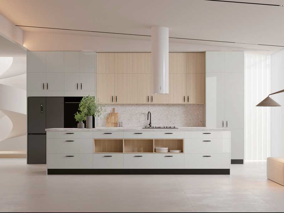 3/4" (18mm) thick MFC board, with melamine laminate on bothsides, and ABS banding of matching color on all edges.